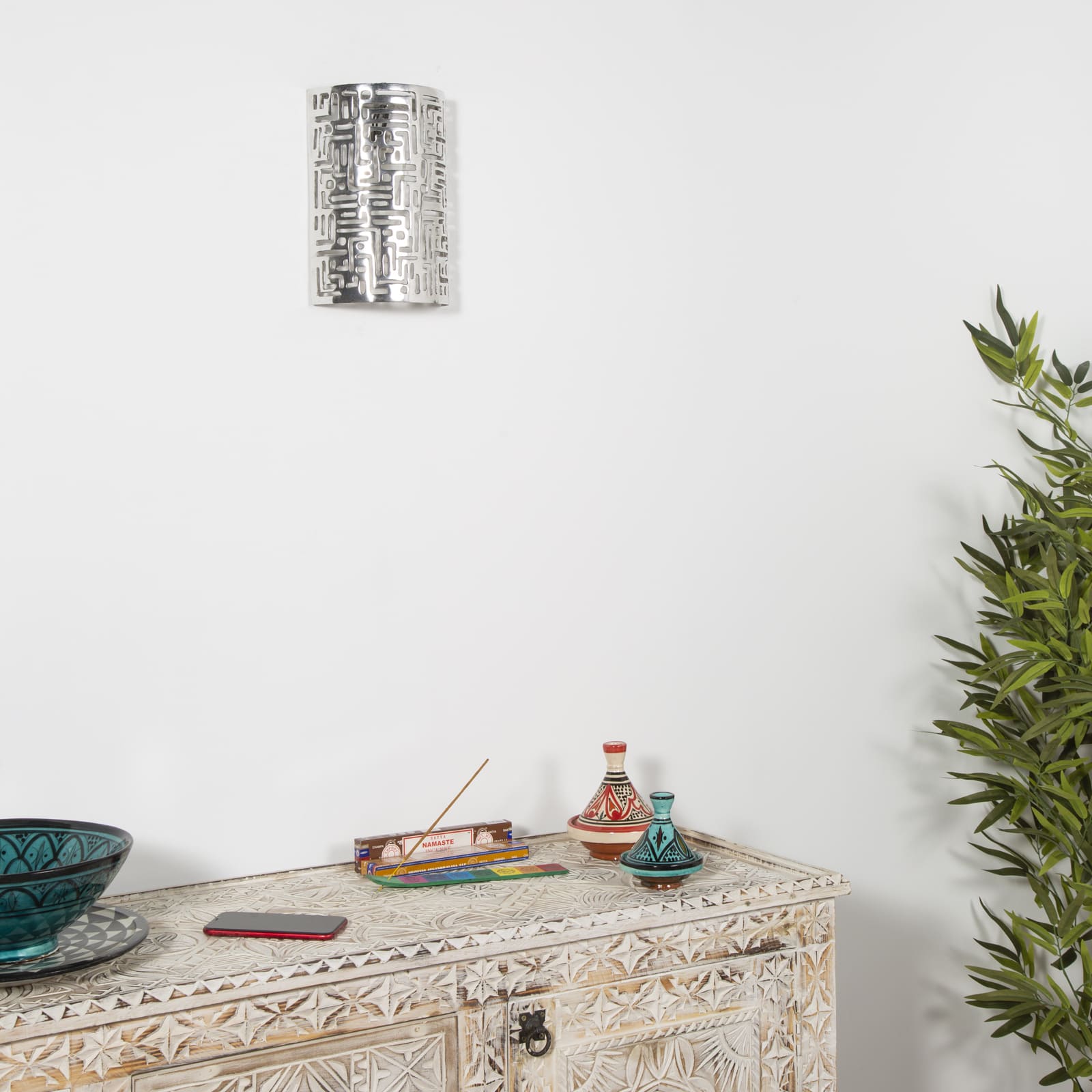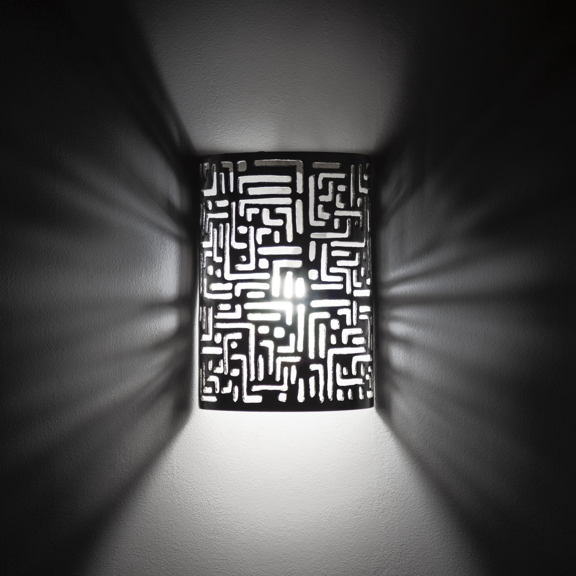 Moderne wandlamp in Arabische stijl, vervaardigd uit aluminium. Ontworpen voor binnen- en buitengebruik (terras, tuin).