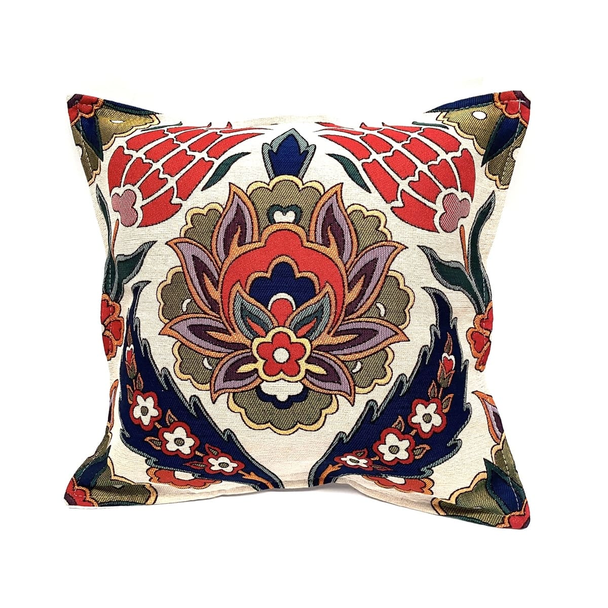 Arabische kussenhoes met lotusbloemmotieven. Versier je woonkamer en geef deze een warme, oosterse sfeer met onze authentieke kussens met bloemenprint. Combineer ze naar hartenlust voor een unieke en gevarieerde inrichting!