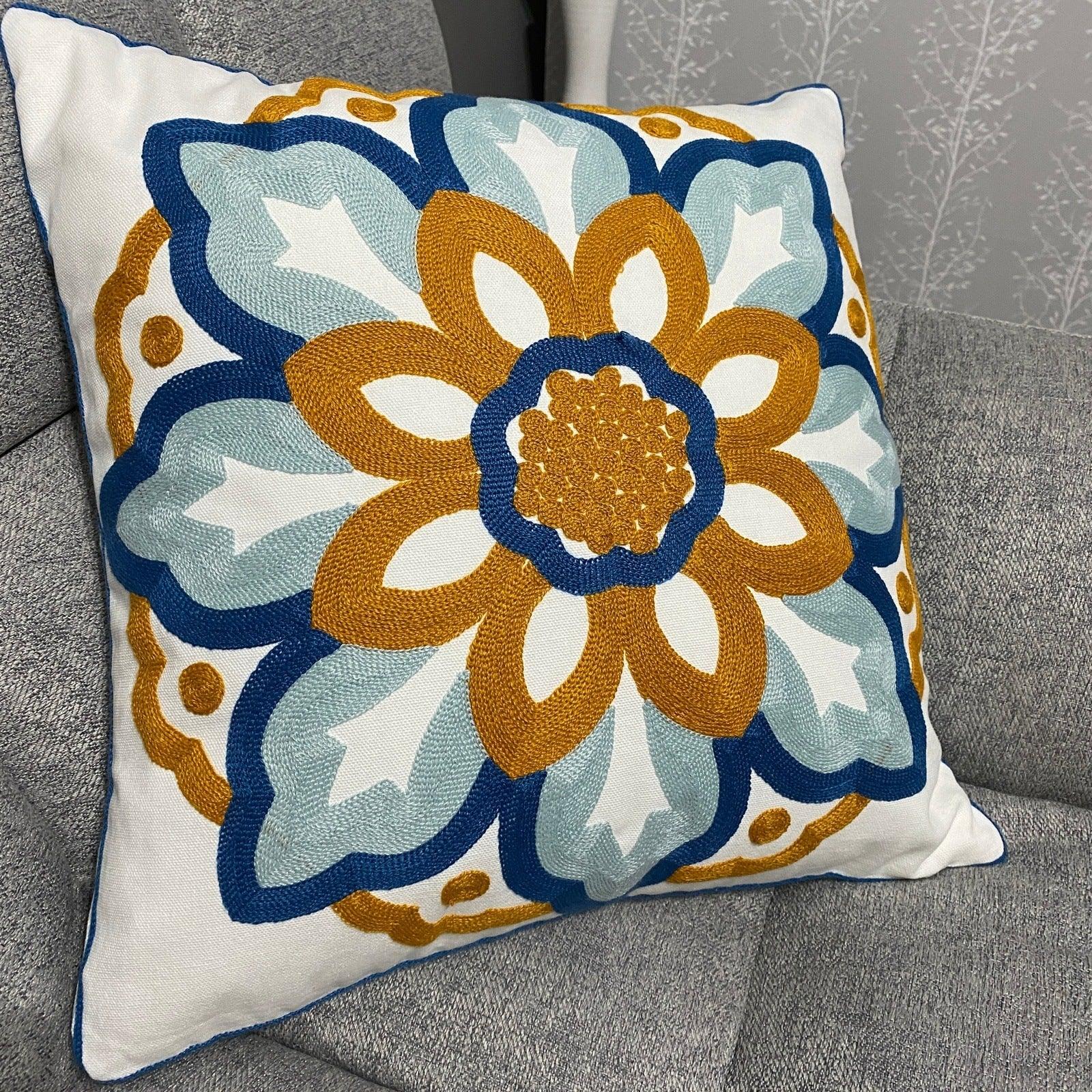 Deze handgemaakte kussenhoes met bloemenprint in Arabische stijl, gemaakt van 100% katoen, fleurt je woonkamer op en geeft je een frisse uitstraling. Hij past bij vrijwel elke interieurstijl, of die nu modern, traditioneel of bohemian is. Voeg een vleugje energie toe aan je minimalistische woonkamer of slaapkamer met dit Arabische kussen met bloemenprint.