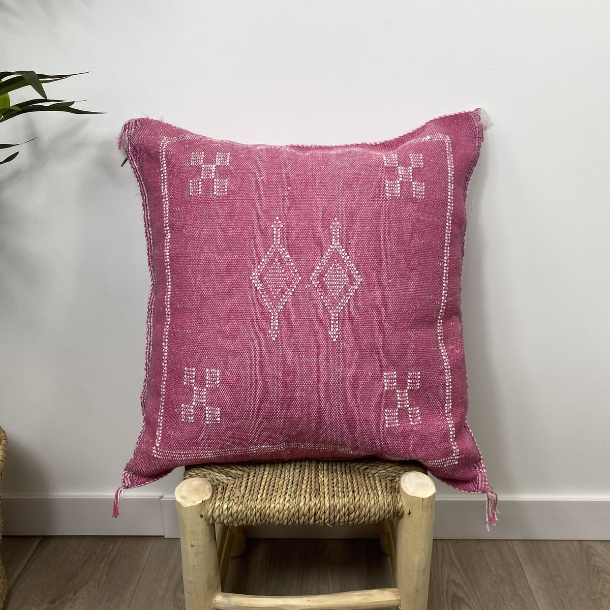 Ontdek deRoze cactus zijden kussen, Een uniek stuk dat de zachtheid van zijde combineert met de authenticiteit van natuurlijke cactusvezels. Dit kussen, handgemaakt in Marokko, is veel meer dan een decoratief accessoire: het is een textielkunstwerk dat elegantie, kleur en een exotische toets aan elke ruimte geeft.