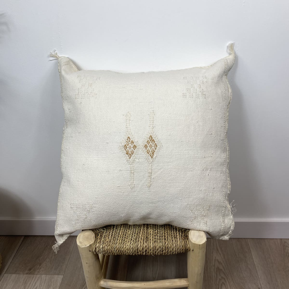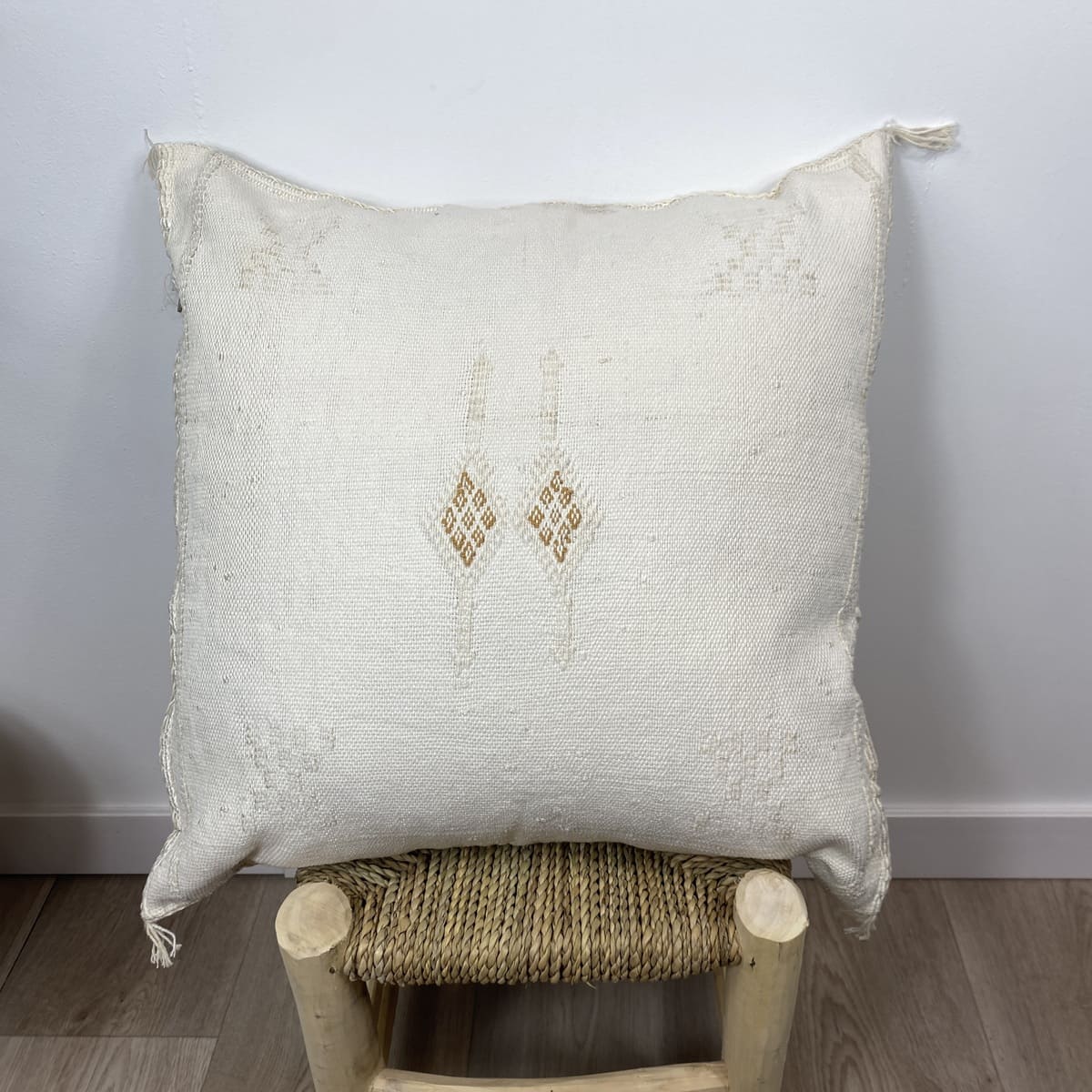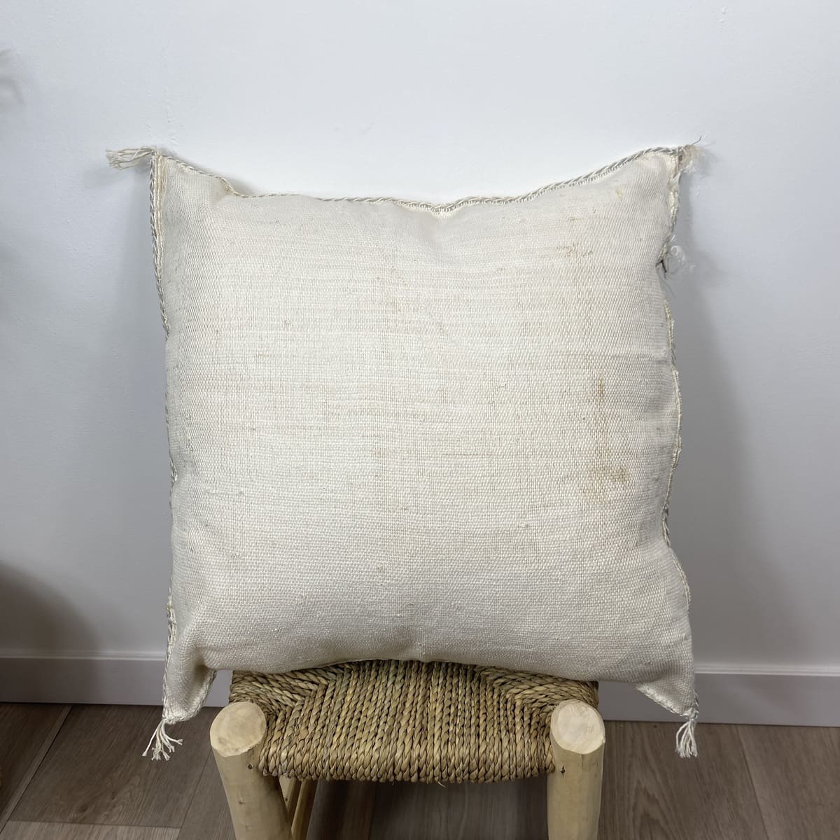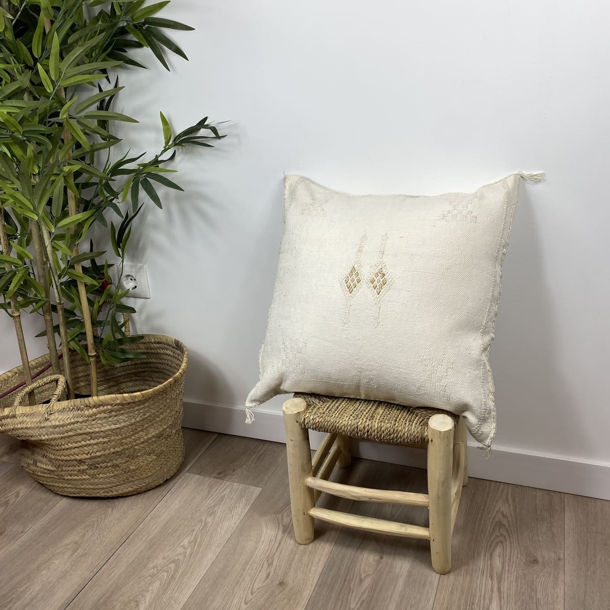 Stel je voor: de eerste zonnestralen in het Atlasgebergte, vastgelegd op textiel. Dat is waar het bij ons om draait.Witte cactus zijden kussen, Een stuk dat rust en puur vakmanschap uitstraalt.