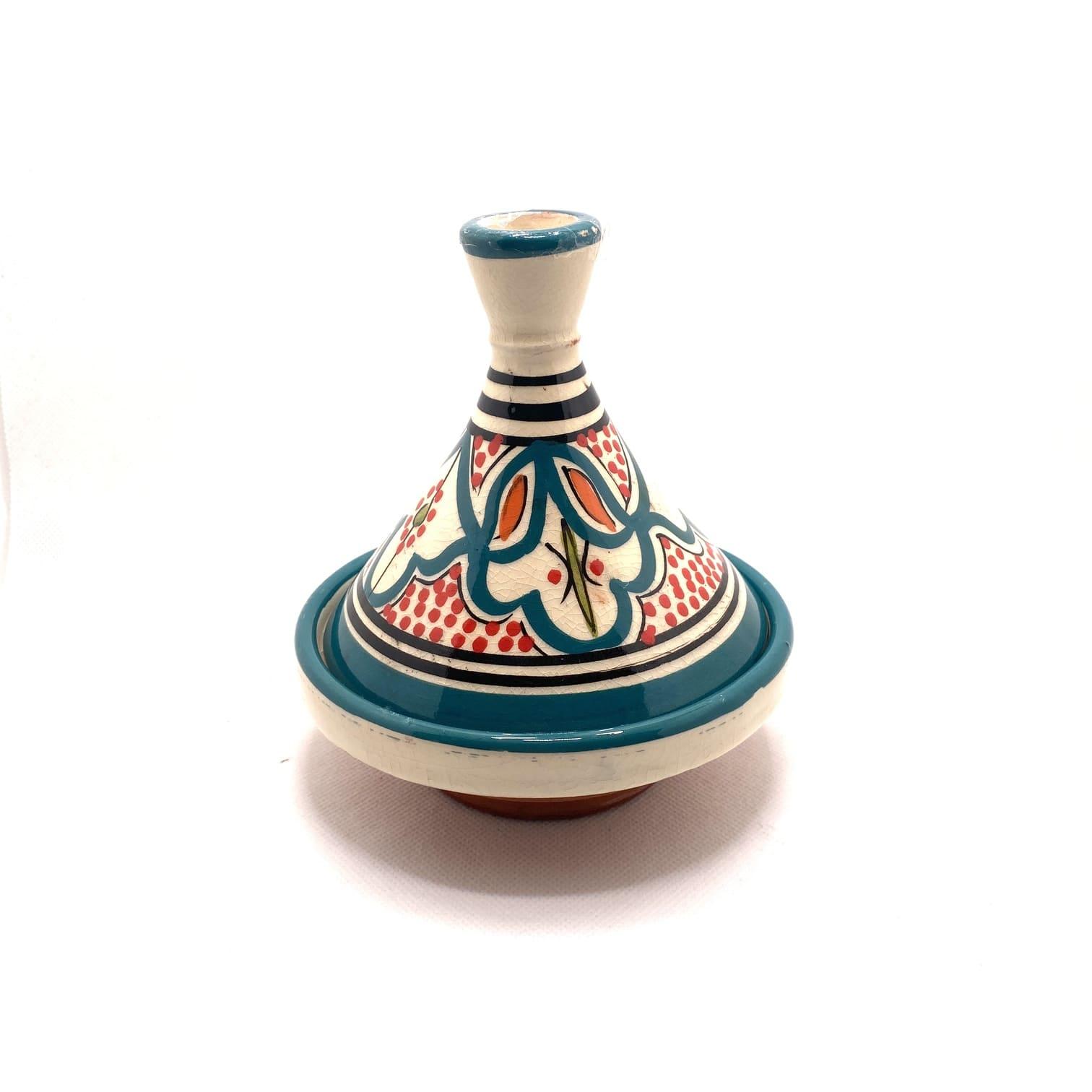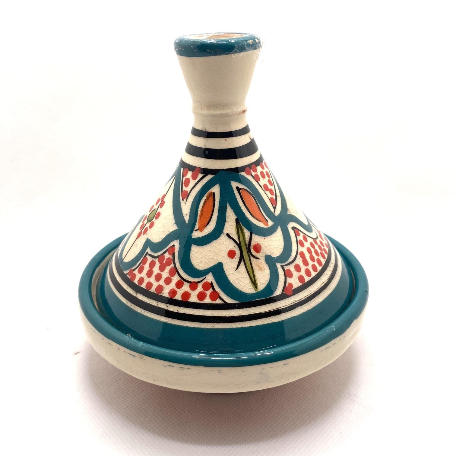 Kleine Marokkaanse tajine, handbeschilderd keramiek, ideaal als kruidenpotje of serveerschaaltje voor hapjes of noten. Handbeschilderd door pottenbakkers in de stad Safi, Marokko.