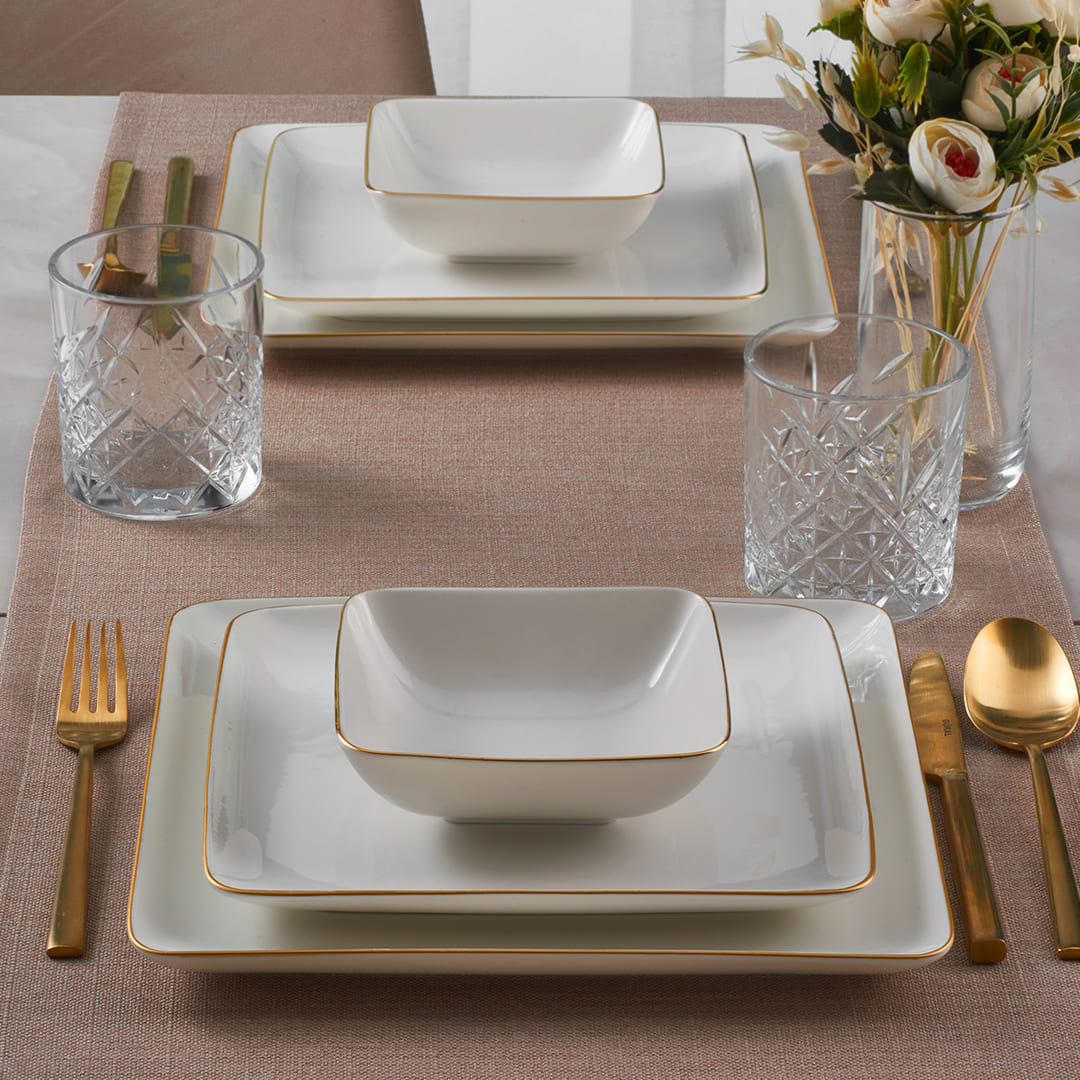 Een authentieke 18-delige Turkse porseleinen serviesset. Vernieuw uw serviescollectie en voeg glamour en een moderne stijl toe aan uw keuken. Güral Porselen Turks porselein combineert op prachtige wijze modern design met traditionele charme. Deze nieuwe serviesset uit Turkije is ontworpen voor 6 personen (3 borden per persoon).